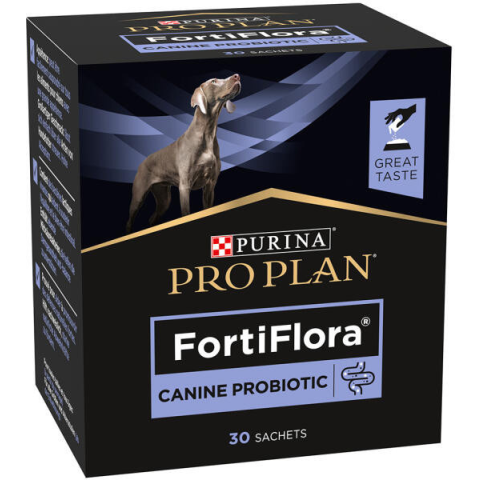 Purina Pro Plan FortiFlora – prémium probiotikum kutyáknak, amely támogatja a bélflórát, javítja az emésztést, segít hasmenés, stressz vagy antibiotikum-kezelés idején. 30 tasakos kiszerelés, egyszerű napi adagolás. A Purina PRO PLAN FortiFlora az egyi