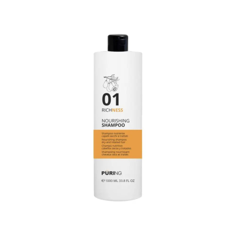 Puring Richness Sampon Száraz Hajra tápláló hatású, avokádóval, selyem- és tejproteinnel, hogy a haj selymes, fényes és könnyen fésülhető legyen.. Jellemzői:. Könnyű textúra, nem nehezíti el a hajat. Vegyileg kezelt hajra is ajánlott. Természetes hatóanyagokkal. Hidratáló és restrukturáló hatás. Puha, ragyogó haj. Használati utasítás:. Vidd fel nedves hajra, habosítsd fel, hagyd hatni 1-2 percig, majd alaposan öblítsd le.