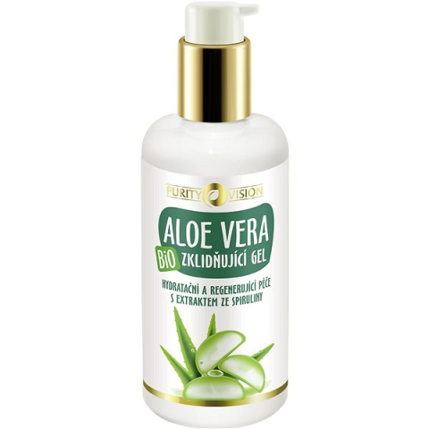 Arcápoló gél - hidratáló és regeneráló hatás, bio kozmetikum és natúr kozmetikum, nappali és éjszakai használatra, normál bőrre, 200 ml-es kiszerelés A Bio nyugtató Aloe vera gél PURITY VISION® egy univerzális segítőtárs, amelyet érdemes mindig kéznél tartani. Nyugtató és regeneráló hatását imádni fogja az egész tested, beleértve az arcot és a haja