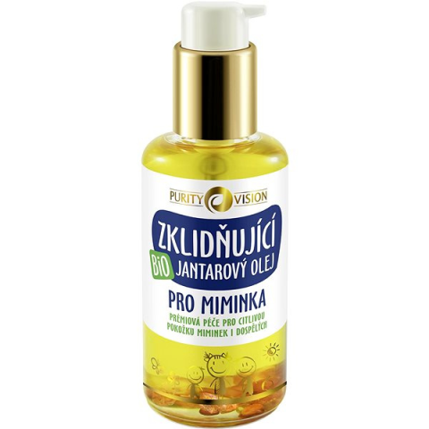 Babaolaj - nyugtató, vanília kivonat, kamilla, jojobaolaj, kókuszolaj, mandulaolaj, orvosi körömvirág, napraforgóolaj és e-vitamin tartalmú A baba mindennapi ápolására megalkotott PURITY VISION BIO borostyánolaj az egész család számára alkalmas. Az olaj ideális bőrápolásra, amely regenerálja, nyugtatja, puhítja és selymessé varázs