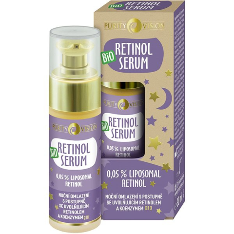 Arcszérum - éjszakai használatra, nők részére, hidratáló, ránctalanító és simító, BIO kozmetikum, vegán kozmetikum, retinalos és retinolos (A-vitaminos), normál, kombinált, száraz és érett bőrre alkalmas, 30 ml-es kiszerelésben Búcsúzz el a ráncoktól a fiatalság vitaminjával. A retinolt és más jótékony hatású összetevőket tartalmazó szérum csökkenti a bőr apró tökéletlenségeit, és visszaadja elvesztett feszességét és rugalma