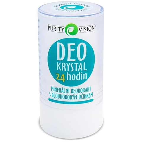 Dezodor - uniszex, stift kivitel, érzékeny és normál bőrre ajánlott, hipoallergén, hosszan tartó hatású, mindennapi használatra, nem hagy foltot, alkoholmentes és illatmentes, 120 g-os kiszerelésben A PURITY VISION Deo Krystal dezodor egy 100%-ban természetes ásványi izzadásgátló. Ez egy Potassium Alum ásványi sókristály, más néven timsó. Ez az egyedülálló dezodor nem tömíti el a pórusokat, és el