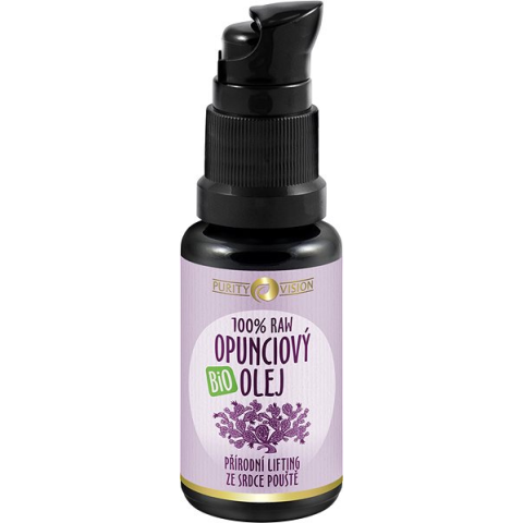 Arcápoló olaj - nők részére, hidratáló és ránctalanító hatás, bio kozmetikum, natúr kozmetikum és vegán kozmetikum, érzékeny, normál, kombinált, száraz és érett bőrre ajánlott, 15 ml-es kiszerelésben A PURITY VISION® 100% Raw Bio Fügekaktusz olaja joggal tekinthető hatékony fegyvernek a bőröregedés és a ráncképződés ellen. A Fügekaktusz olaj rendszeres használatával bőröd észrevehetően ragyogóbbá