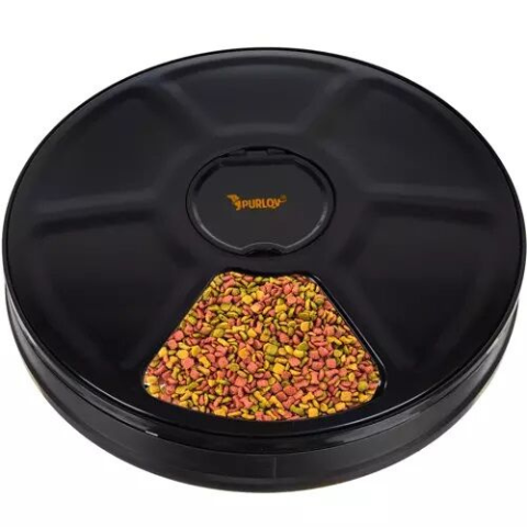 1 kép Purlov Automata állateledel adagoló időzítővel, digitális kijelzővel, 6 kamrás, fekete színben