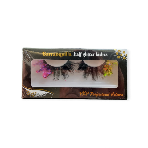 PXP parti 3D műszempillák Chunky - nagyszemcsés csillámokkal, melyek UV fényben világítanak neon színben. 1 pár szempilla két különböző színben - zöld és rózsaszín. Partik, bulik, rendezvények, fesztiválok feltünő és egyedi kiegészítője smink mellé. Kisze