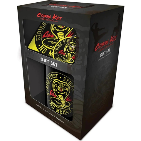 Ajándék szett - a Cobra Kai ajándékcsomag tartalmaz egy 315 ml űrtartalmú kerámia bögrét, egy alátétet és egy kulcstartót, mindegyiken Cobra Kai motívummal A Cobra Kai ajándékcsomag minden rajongó szívét megdobogtatja, aki szereti ezt a kultikus sorozatot, amely a legendás Karate Kid (Karate kölyök) folytatása. A csomag egy 315 ml-es kerámia bögrét tarta