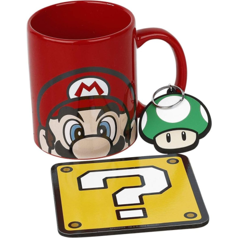Fedezze fel a bögréből, alátétből és kulcstartóból álló ajándékkészletet – igazi csemege minden Super Mario Bros rajongónak! Minden alkatrész gondosan kidolgozott, harmonikus és esztétikus egészet alkotva. Gyönyörűen csomagolt, ez a készlet tökéletes ajándék választás. A bögre, az állvány és a kulcstartó tökéletesen illeszkedik egymáshoz, és egyenesen Mario világába visz.A készlet használata tiszta öröm! A bögre tökéletesen illeszkedik a kezedbe,