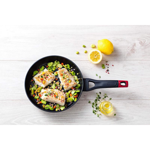 26 cm átmérőjű masszív alumínium szeletsütő, tapadásmentes bevonattal, ergonómikus nyéllel. Magassága: 7,2 cm.