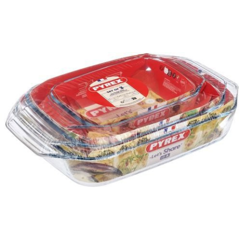 Sütőtál - 3 db, űrtartalom: 1,4 l, 3 l és 4 l, méretek: 27 × 17 × 6 cm, 35 × 23 × 7 cm és 39 × 25 × 7 cm Klíčové vlastnosti sady pekáčů Pyrex, 3 kusy, objem 1,4 l, 3 l a 4 lSada tří skleněných pekáčů Pyrex o objemu 1,4, 3 a 4 lVhodné pro pečení a zapékáníVhodné do myčkyRozměry:pekáč o obj