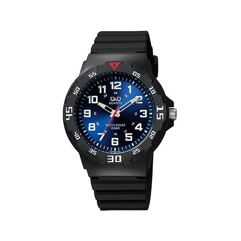 Karóra férfiaknak - analóg idő megjelenítés, óramű típusa quartz, kerek számlap, sportos, arab indexek, műanyag számlap, 100 m (10 ATM) vízhatlanság, a tok anyaga műanyag, a tok színe fekete, a szíj anyaga műanyag, a szíj színe fekete A kitűnő Q&Q MEN’S FASHION PLASTIC VR18J005Y férfiaknak karóra jó szolgálatot tesz a mindennapokban. Az alapját egy 43 mm szélességű kerek számlap képezi. A Quartz technológia rendkívüli megbízhatóság