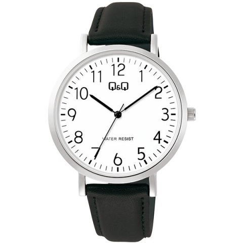 Karóra férfiaknak - analóg idő megjelenítés, óramű típusa quartz, kerek számlap, elegáns, arab indexek, ásványi számlap, 30 m (3 ATM) vízhatlanság, a tok anyaga sárgaréz, a tok színe ezüst, a szíj anyaga bőr, a szíj színe fekete, 24,5 cm max. csuklóméretre, cserélhető szíjjal A klassz Q&Q Mens C34A-007PY férfiaknak karóra jó szolgálatot tesz a mindennapokban. Az alapját egy 40 mm átmérőjű kerek számlap alkotja. A hatékony Quartz technológia pontos időmé