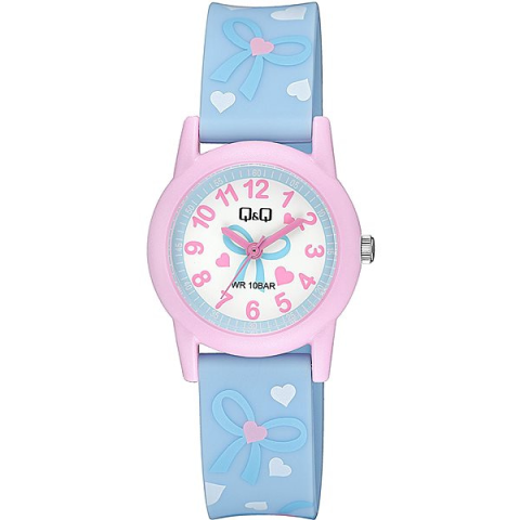 Gyerekóra - quartz óraszerkezet, szíj színe kék, óralap átmérője 30,5 mm, szíj anyaga műanyag, vízállóság 100 m (10 ATM), motívum Szívek, műanyag óralap A kitűnő Q&Q Kids V22A-008VY gyerekeknek karóra remek választás a mindennapkora. Az alapját egy 30,5 mm szélességű kerek számlap képezi. Az évek óta bevált Quartz technológia pontos időmérést és hossz