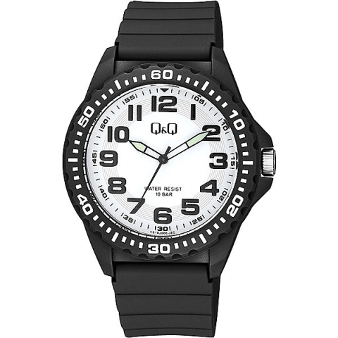 Karóra férfiaknak - analóg idő megjelenítés, óramű típusa quartz, kerek számlap, 12/24 órás formátum, Q&Q sorozat, minimalista, ásványi számlap, 100 m (10 ATM) vízhatlanság, a tok anyaga műanyag, a tok színe fekete, a szíj anyaga műanyag, a szíj színe fekete, 21,3 cm max. csuklóméretre, cserélhető szíjjal A nagyszerű Q&Q VS16J006Y férfiaknak karóra jó szolgálatot tesz a mindennapokban. Az alapját egy 43 mm szélességű kerek számlap képezi. A Quartz óraszer