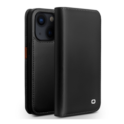 QIALINO tok álló, valódi bőr (FLIP, oldalra nyíló) FEKETE Apple iPhone 14
