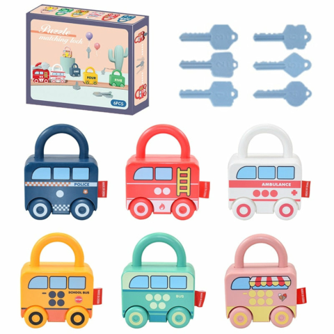 A játékkészleti a zárás és feloldás készségeinek elsajátítását és gyakorlását, valamint serkenti a memória fejlesztését és fejleszti a finommotorikát.