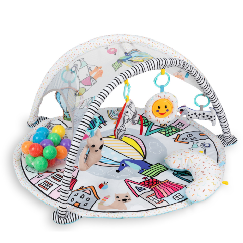 CITY oktatószőnyeg A CITY oktatószőnyeg egy színes és izgalmas városi történetet mesél el a gyerekeknek, miközben segít a kicsiknek a játékos tanulásban. A szőnyeg gazdag színei és változatos mintái felkeltik a baba figyelmét, miközben a különböző játékok