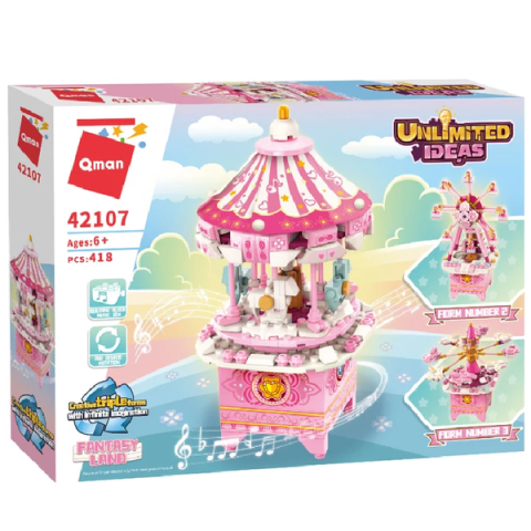 QMAN márkájú, minőségi, készségfejlesztő építőjáték lányoknak. Egy kihagyhatatlan 3az1-ben ajánlat. Felhúzható, zenélő óriáskerék vagy kétféle körhinta építhető vidám csajos színekben. Megunhatatlan, hisz egyszerűen átépítheted!
