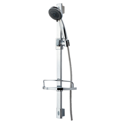 Extravaganza zuhanyszett - háromfunkciós, gőzkrómozott, műanyag kézi zuhanyfej - 70 cm-es, gőzkrómozott, műanyag zuhanytartó rúd - 150 cm-es, fém gégecső - gőzkrómozott, műanyag szappantartó