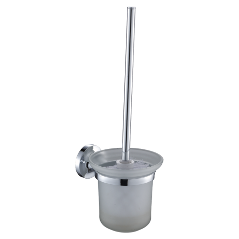 Gongher WC-kefe tartó WC-kefével - krómozott fém tartógyűrű - homokfúvott üveg WC-kefe tartó - műanyag WC-kefe - fali kivitel - a felszereléshez szükséges kiegészítőket tartalmazza