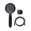 Zuhanyszett, 5 funkciós fényes fekete zuhanyfejjel és 150cm fém fekete zuhanycsővel és falifixszel
