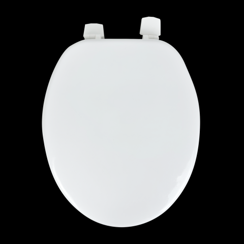 Fehér MDF WC-ülőke műanyag zsanérral.