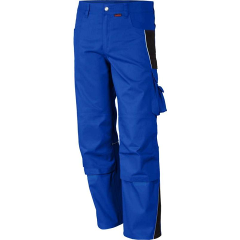 Derékrész 7 bújtató pánttal. Bedolgozott gumírozás a derékrész oldalain.Kalapácstartó. Slicc fém cipzárral. Előformázott térd és tépőzáras térdzseb. Elasztikus sztreccsbetét a térdzseb alatt. Jól láthatósági szegélyek az elülső kontrasztszínű részeken, a hátsó térdvarrásnál és a háton.