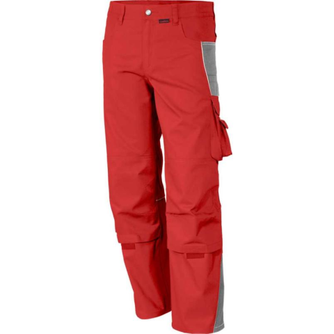 Derékrész 7 bújtató pánttal. Bedolgozott gumírozás a derékrész oldalain.Kalapácstartó. Slicc fém cipzárral. Előformázott térd és tépőzáras térdzseb. Elasztikus sztreccsbetét a térdzseb alatt. Jól láthatósági szegélyek az elülső kontrasztszínű részeken, a hátsó térdvarrásnál és a háton.