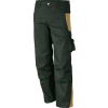 Derékrész 7 bújtató pánttal. Bedolgozott gumírozás a derékrész oldalain.Kalapácstartó. Slicc fém cipzárral. Előformázott térd és tépőzáras térdzseb. Elasztikus sztreccsbetét a térdzseb alatt. Jól láthatósági szegélyek az elülső kontrasztszínű részeken, a hátsó térdvarrásnál és a háton.