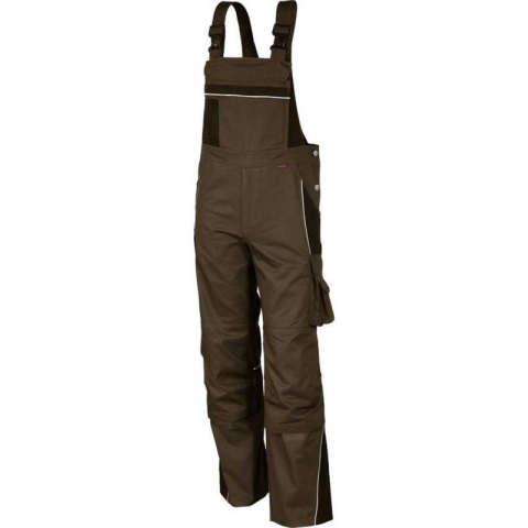 Derékrész 7 bújtató pánttal. Bedolgozott gumírozás a derékrész oldalain.Kalapácstartó. Slicc fém cipzárral. Előformázott térd és tépőzáras térdzseb. Elasztikus sztreccsbetét a térdzseb alatt. Jól láthatósági szegélyek az elülső kontrasztszínű részeken, a hátsó térdvarrásnál és a háton.
