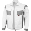Gallér. Elöl rejtett műanyag cipzárral. Tépőzáras kézelő. Hosszított hátrész. Mozgást elősegítő hátszűkítő. Jól láthatósági szegély a mell- és hátfeltéten.