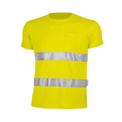 Minőségi Poliészter/viszkóz anyagok kombinációja, magas szintű kényelmi viselet, nedvszívó, lélegző és páraszabályzó kialakítás. Reflexcsíkok: 3M-8910, 6 cm széles. Környakas kialakítás. 2 Reflexcsík (fényvisszaverő) a derékon.
