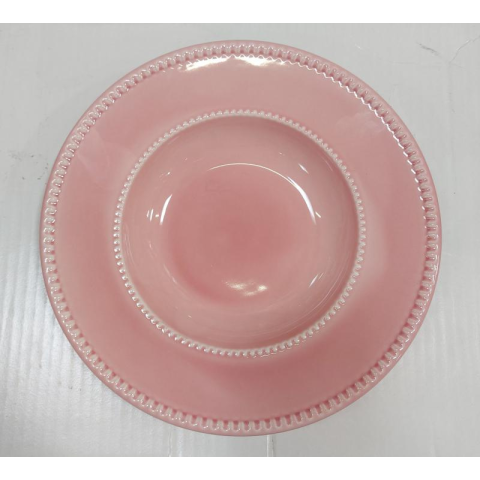 QUALITY CERAMIC LUXE kerámia, rózsaszín mély tányér, 23cm. 1db tányér és evőeszköz árgrafikon