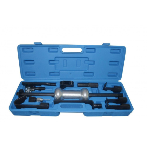 LEÍRÁS Csúszó kalapács készlet, karosszéria egyengetésre és csapágyak lehúzására, 13 darabos Segítségével kihúzható a horpadás a karosszériából, és eltávolítható a nehezen mozdítható, megszorult csapágy a tengelyről/kerékagyról. Csúszósúly: 2kg A ké