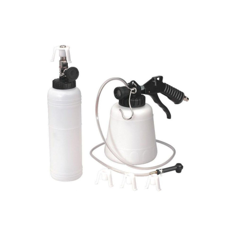 LEÍRÁS Pneumatikus fék légtelenítő, és folyadék leszívó vákuumpumpa. A készlet tartalmaz egy tartályt a folyadék feltöltésére 4 rögzítő adapterrel együtt. Műszaki adatok: levegő nyomás: 90-120psi (6.2 – 8.3 bar) levegő fogyasztás: 180 l/perc vákuum