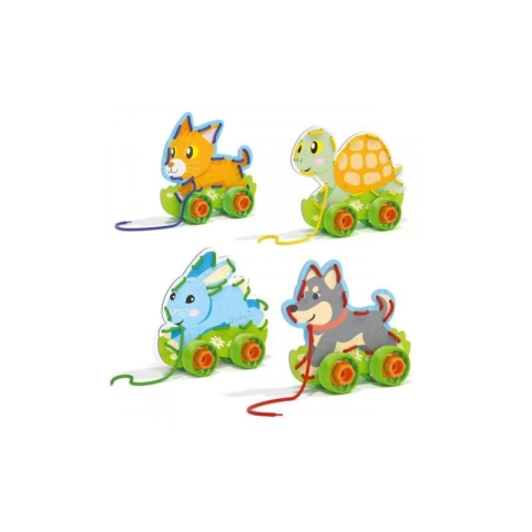 Ezzel a fantasztikus játékkal a gyerekek saját maguk alkothatják meg játékukat, ugyanis a szettben található alkatrészekből nekik maguknak kell összeszerelni a guruló állatokat. Elsőként a karton állatokra kell felszerelni a műanyag kereket, majd a kialakított lyukakon keresztül be kell fűzni a színes zsinórt, és már kezdődhet is a játék. A Montessori egy