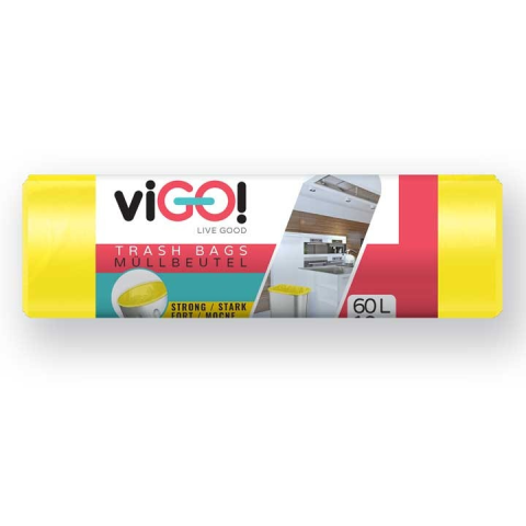 1 kép QUICKPACK viGO! Szemeteszsák LDPE sárga 60 l / 10 db, 60x80 cm