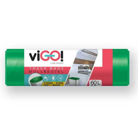 1 kép QUICKPACK viGO! Szemeteszsák LDPE zöld 60 l / 10 db, 60x80 cm