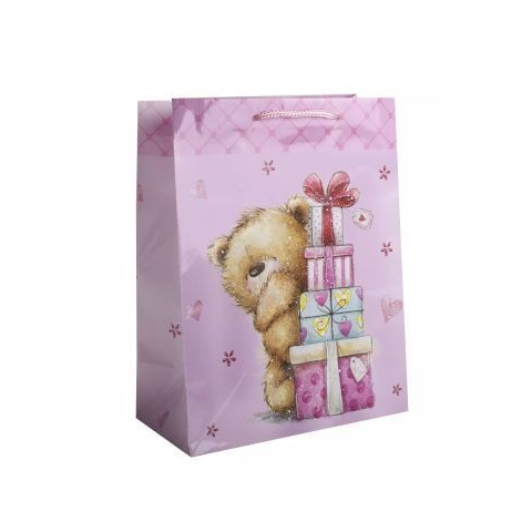 1 kép Qx Ajándéktasak maci mintával, 18 x 23 cm - Rózsaszín