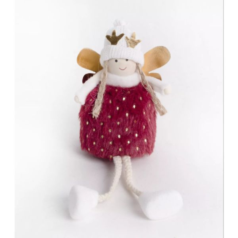 Ha karácsony, akkor itt a dekorálás ideje!Ezzel az aranyos angyalka dísszel feldobható a nappali, a gyerekszoba vagy a lakás bármelyik helyisége. Sőt, akár a bejárati ajtón is nagyon jól mutat. Az angyal hátán arany színű szárnyak vannak, piros, eper mintájú teste és fehér sapkája van. Lábai madzagból készültek, így szabadon lógatja őket.Mérete: 20 cm