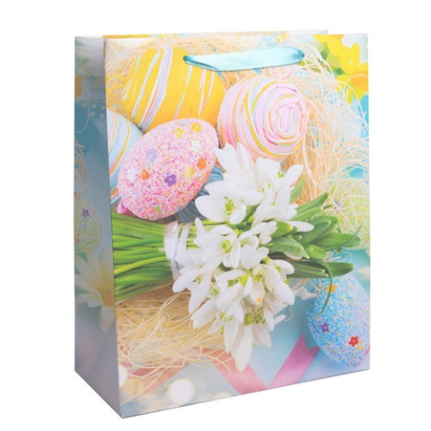 1 kép Qx Dísztasak húsvéti matt 26x32 cm hóvirág és tojások