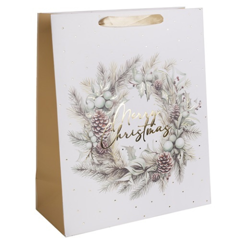 Dísztasak matt 11x14 cm koszorú Merry Christmas felirattal - P0090-6280 - Ajándék csomagolók, díszzacskók -