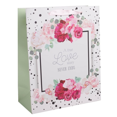 Dísztasak matt 11x14 cm rózsás "Love" - P0090-6035 - Ajándék csomagolók, díszzacskók -