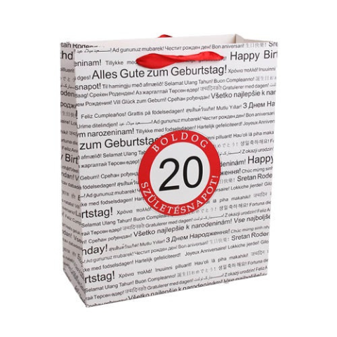 Dísztasak matt 18x23 cm fehér 20 éves - P0090-3981 - Ajándék csomagolók, díszzacskók -