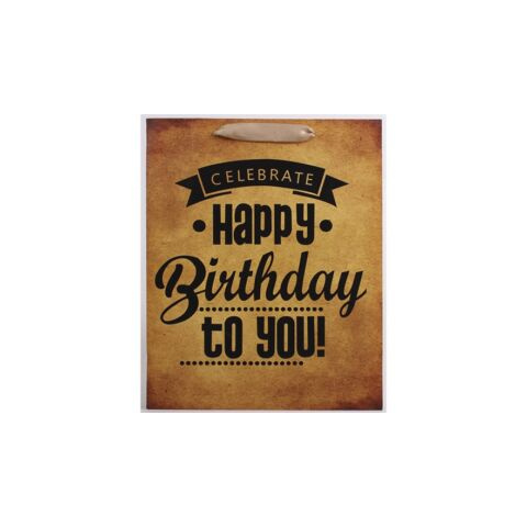Dísztasak matt 26x32 cm barna Happy Birthday to you - P0090-3974 - Ajándék csomagolók, díszzacskók -