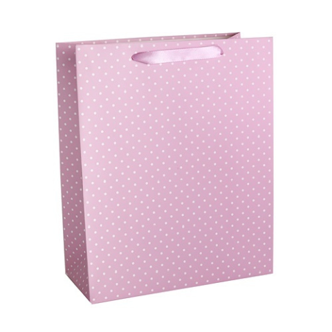 Dísztasak matt 26x32 cm rózsaszínű pöttyös - P0090-5015 - Ajándék csomagolók, díszzacskók -