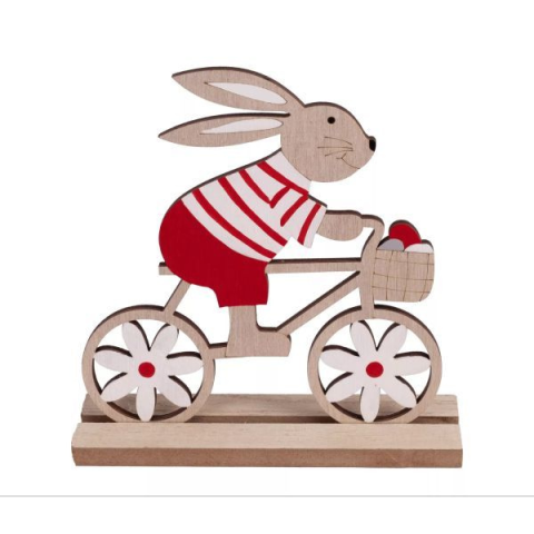 Itt a tavasz!A tavaszi nyaktakarítás után a húsvéti dekoráció sem maradhat el, és ez a fa dísz kiváló kiegészítője lehet a lakásnak és a húsvéti időszaknak.A termék jellemzői:- Kiváló minőségű fa anyagból készült- Vidám nyuszi figura biciklivel- Festett részletek- Stabil talapzat- Ideális tavaszi és húsvéti dekorációCsomagolás mérete: 1 x 15 x 16 cm