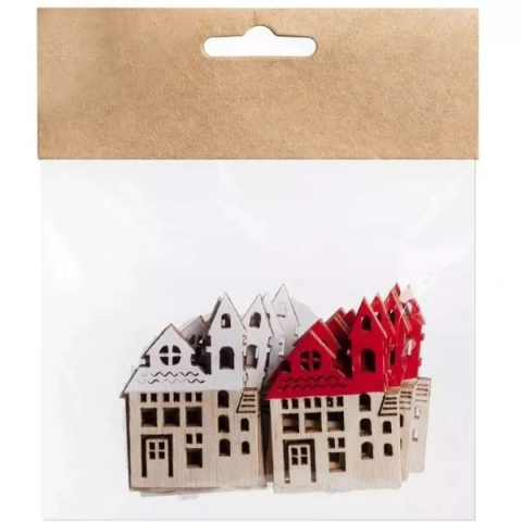 1 kép Qx Fa templom karácsonyfa dísz, 12 db-os, 5 cm