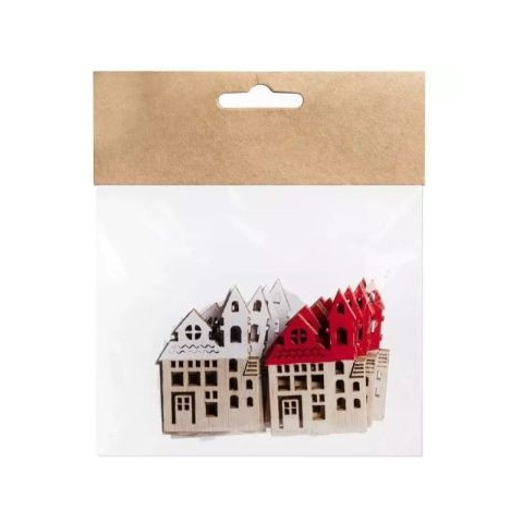 - 12 db templom dísz - Piros és fehér színek - Tartós fa - Ideális karácsonyi dekorációhoz - Könnyen kombinálható más dekorációs elemekkel