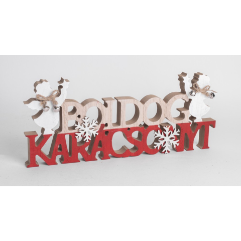 Fa Boldog Karácsonyt asztali dekoráció 30x16cm. A Boldog karácsony felirat egyértelművé teszi, hogy ide ért a karácsony. A fából készült Boldog karácsony feliratot angyalok teszik még hangulatosabbá. Bárhová könnyedén felállítható, akár már az előszob