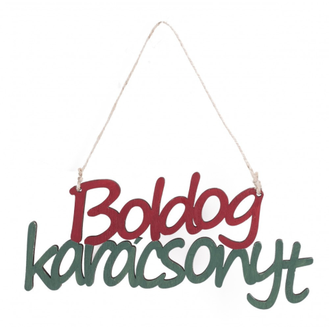 Fa kopogtató Boldog Karácsony 20cm Piros&Zöld Ajtódísz, kopogtató, Boldog Karácsonyt felirattal, Lepd meg családod, barátod.